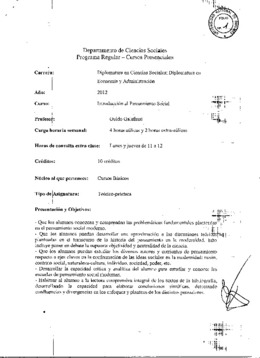 El presente programa pretende que los alumnos se aproximen a los siguientes contenidos mínimos: La génesis de la sociedad moderna. Individuo y Estado. Propiedad, mercado y razón. Estado de naturaleza y sociedad civil. El contrato. La sociedad como construcción. Las dos revoluciones. La sociedad industrial y la sociedad de clases. El punto de vista conservador. El socialismo antes de Marx. Marx y la tradición marxista. Fundamentos socioeconómicos de la división de clases. Estructura de clases y conflictos políticos. Clases y máquina estatal. Alexis de Tocqueville: movilidad e igualdad social. Igualdad social y desigualdad económica. Democracia y liberalismo político. Emile Durkheim: lazo social y lazo moral. División del trabajo e individualismo. Tipos de solidaridad: mecánica y orgánica. Progreso y división del trabajo. El capitalismo según Max Weber, religión y economía. Racionalidad y burocracia. Los tipos de dominación y el Estado moderno.