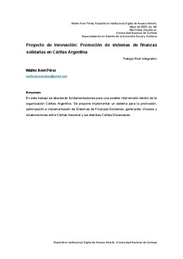 Proyecto de innovación : promoción de sistemas de finanzas solidarias en Caritas Argentina
